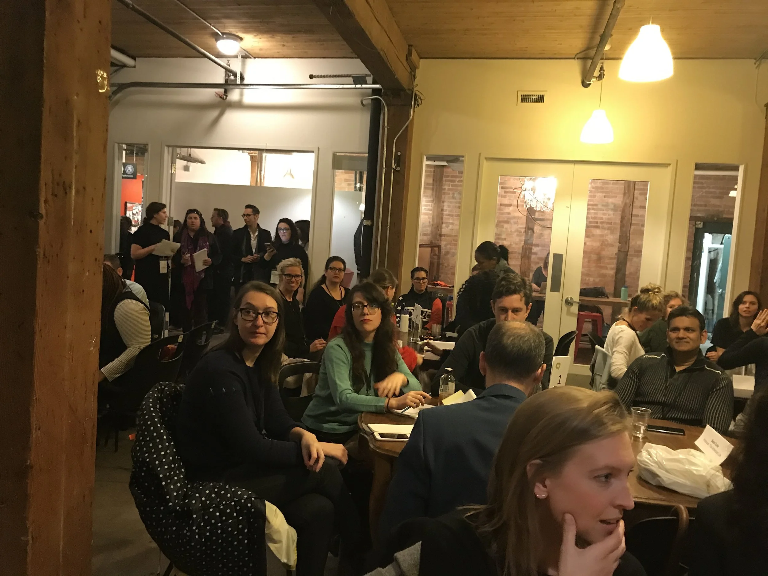 It was a highly experimental event - nine tables, with one industry insider stationed at each. Rotating groups of 3-5 attendees spent 11 minutes at each table, learning a bit about the background of the “expert”, and asking questions about the podcast industry before being shuffled off to the next table. Kind of like platonic group speed dating. The event was close to two hours, but it was such a whirlwind of intros and chats that it felt like it ended before it began. Fun but hectic!